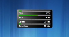 Простой системный индикатор уровня загрузки процессора, памяти и входящего/исходящего трафика.